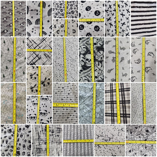 Cotton Lycra - Round FF - all main prints and FH sets are listed here - monstera skulls, powder rainbow, neutral skulls, hearts, rainbows and more! Retail