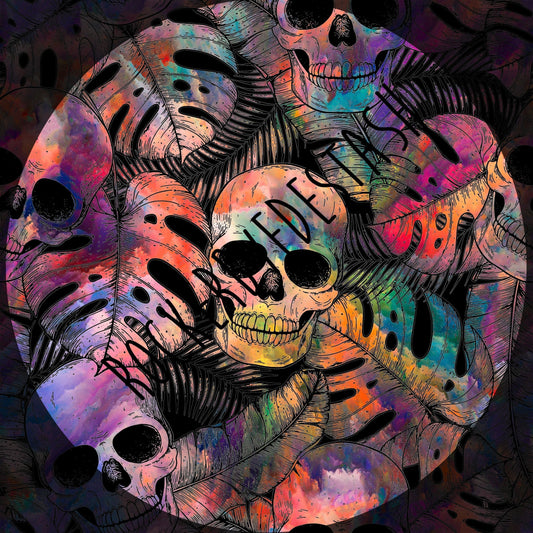 Cotton Lycra - Retail Fabric Round PP - Spring Skeletons with Succulent and Monstera Skull rerun