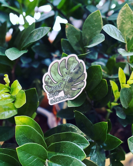 Approximately 2.5 inches Leaf Me Alone - plant monstera vinyl sticker - retail swag
