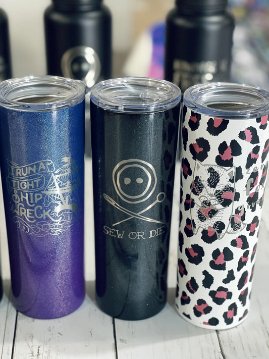 NEW Engraved Stainless Steel Skinny Tumbler & Straw 20 ounce - Retail