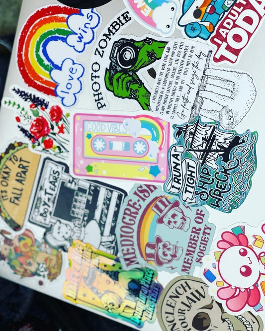 Approximately 3 inches Just Keep Growing Skeleton Hand Flowers vinyl sticker - retail swag