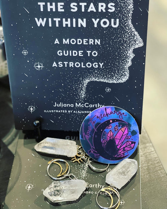 Approximately 2.5 inches Time to Recharge - moon crystal vinyl sticker - retail swag