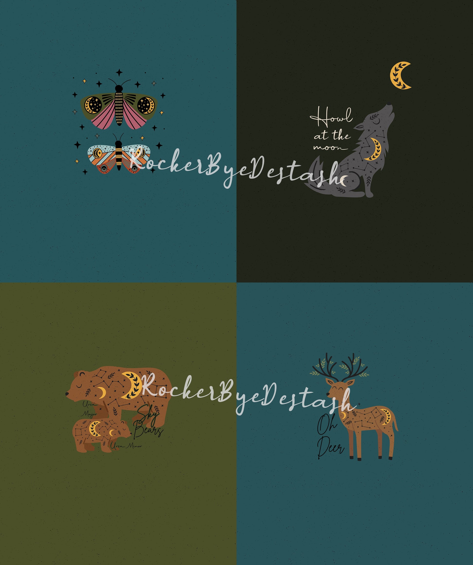 Cotton Lycra Panels - Round OO - Kid & Adult size - Skulls & Mushroom, Magic Forest, Wilderness & Hedgehog panels Retail Fabric